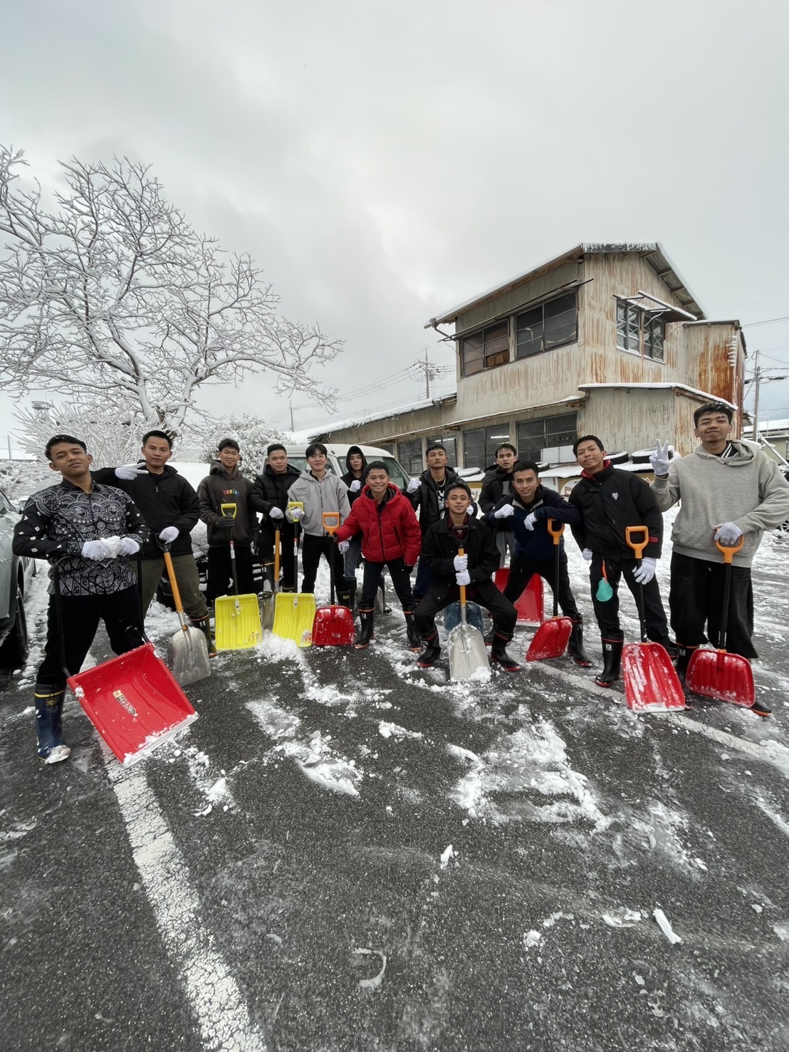 雪です。東南アジアの実習生は初めての雪。除雪を楽しみました。